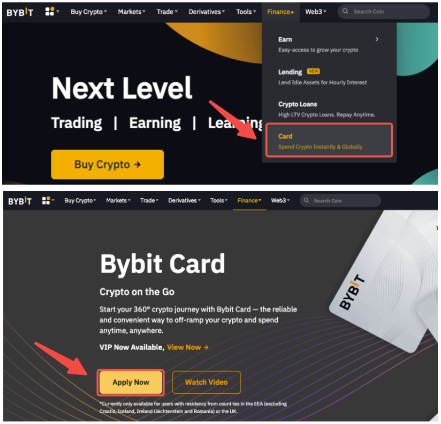 Step 1: Go to FinanceCard. Click on Order New on the physical Bybit Card Application banner.