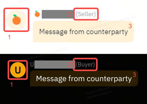 The mentions “Buyer” or “Seller” will be shown beside your counterparty’s nickname. |