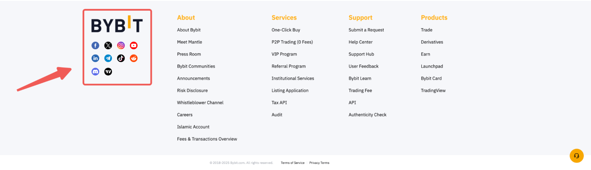 Alternatively, you can visit Bybit’s official social media channels via the quick links located at the footer of the Bybit website.