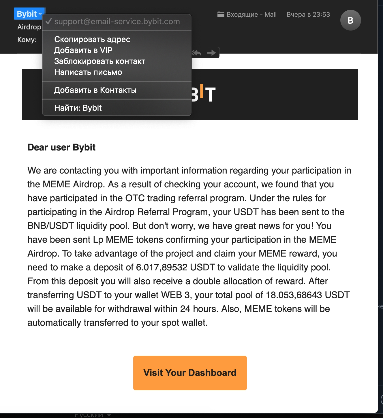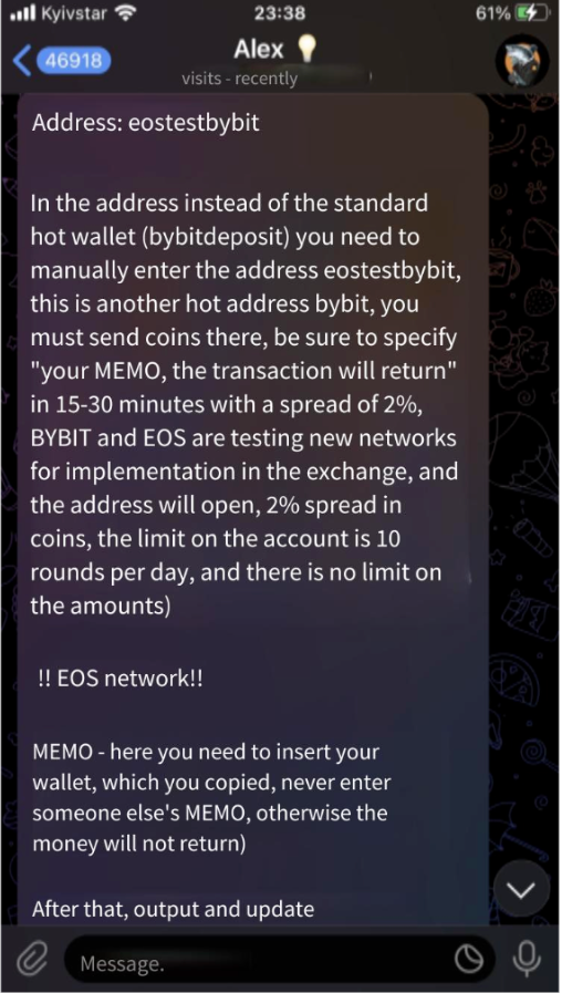 Scenario 7: Ask Users to Transfer Funds to Fake Bybit Wallet Address