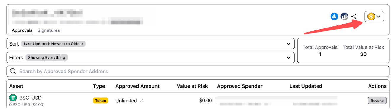 Step 2: Once you have completed the authorization, please select the chain network of the dApp you want to revoke in the top right corner.