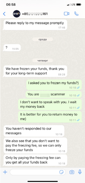 • Individuals who are not official Bybit staff but act as Customer Support to contact users via social media such as Telegram, WhatsApp, X (formerly Twitter), or more.
