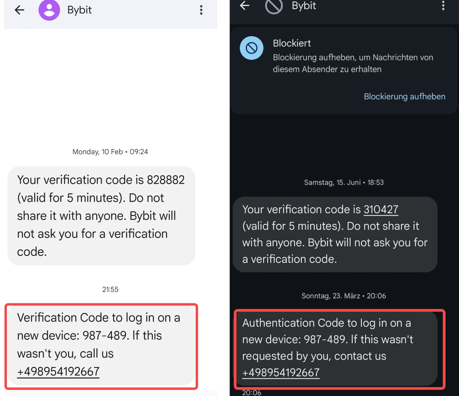 Scenario 3: Fake Bybit SMS Scam Alert