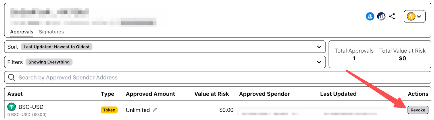Step 4: Please click on the Revoke button in the Actions column. Upon completing these steps, the token approval will be canceled immediately.