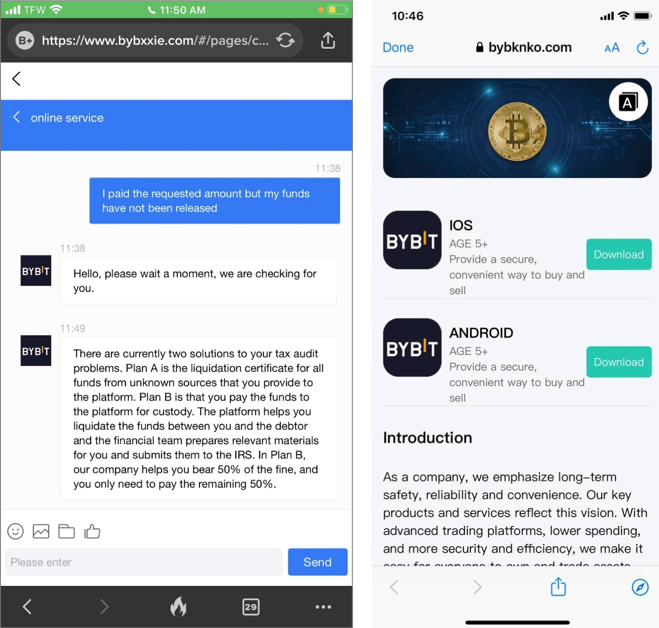 Scenario 1: Fake Bybit Website or Scam App with Fake Bybit Support