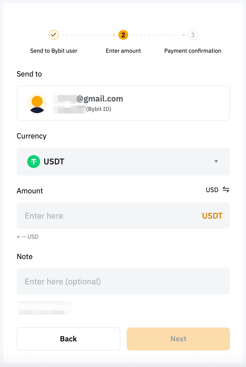Step 3: Enter the amount of coins you want to send, and enter a note to indicate the payment purposes (optional).