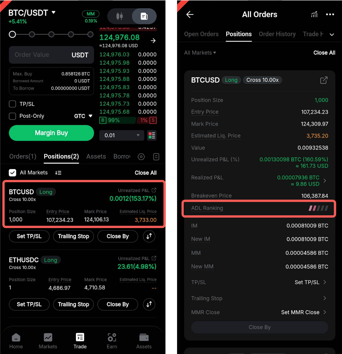您可以通过降低杠杆或部分平仓仓来降低 ADL 敞口。