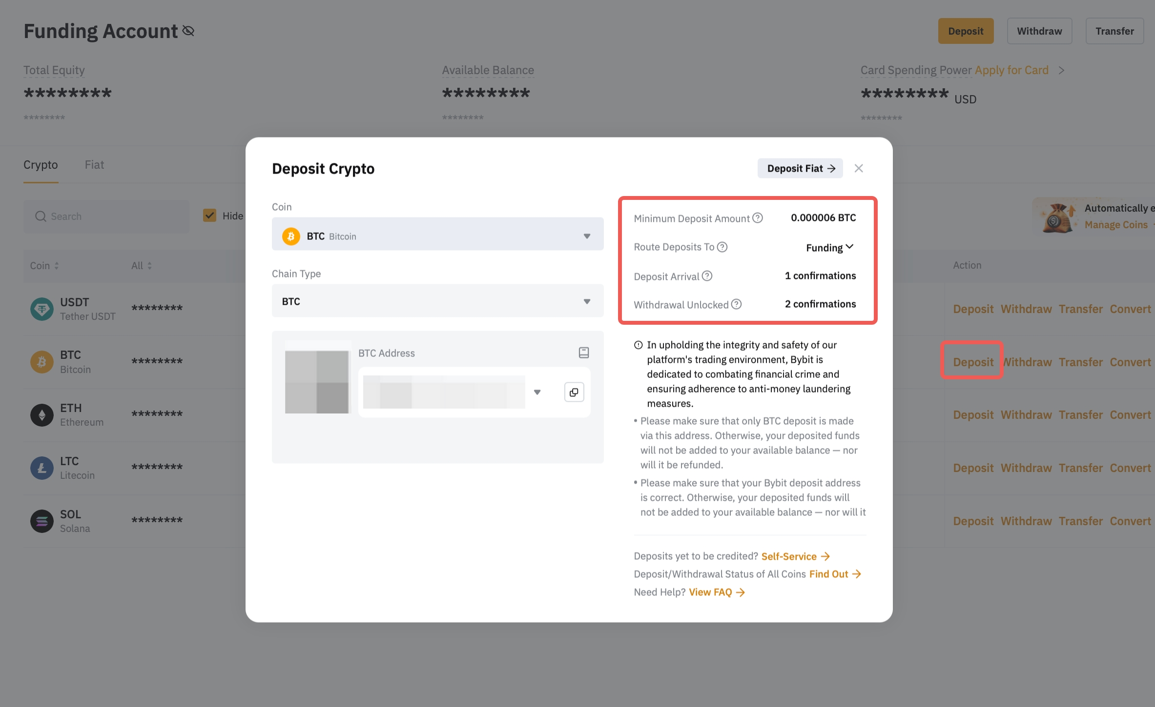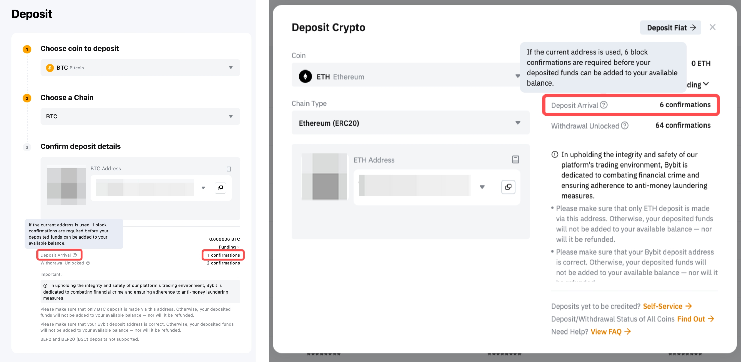 Bybit 对不同代币在到账之前所需的区块链确认次数有不同的要求。