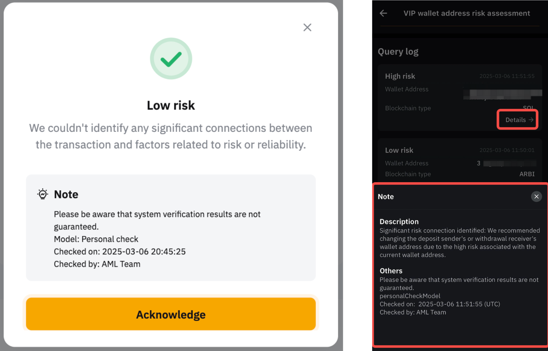 通过输入钱包地址并选择区块链类型,系统将评估您的风险等级。但请注意,由于区块链数据可能过时或受到不断变化的威胁,系统无法保证验证结果。