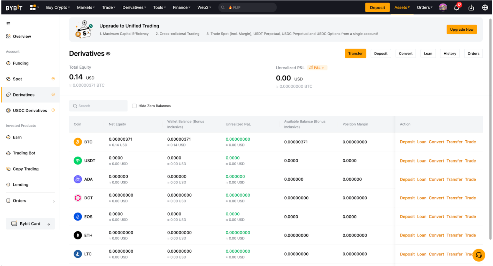 温馨提示:在交易非反向合约衍生品时,您需要将资金划转至您的统一交易账户