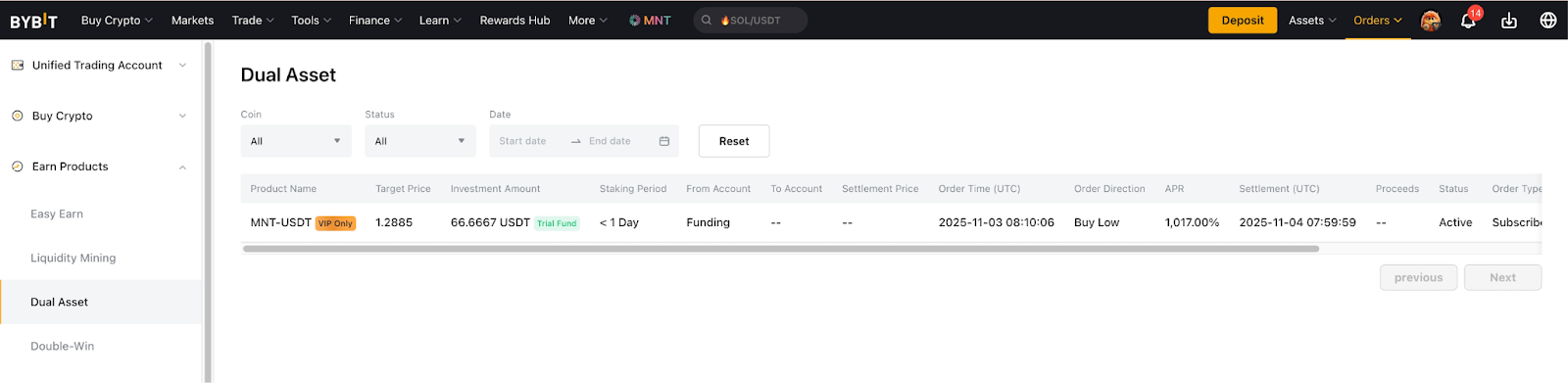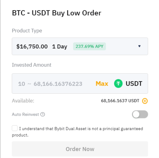 对于“低买”产品,您可以使用稳定币 (USDT) 进行申购;而对于“高卖”产品,您可以使用加密货币资产(例如 BTC、ETH)进行申购。