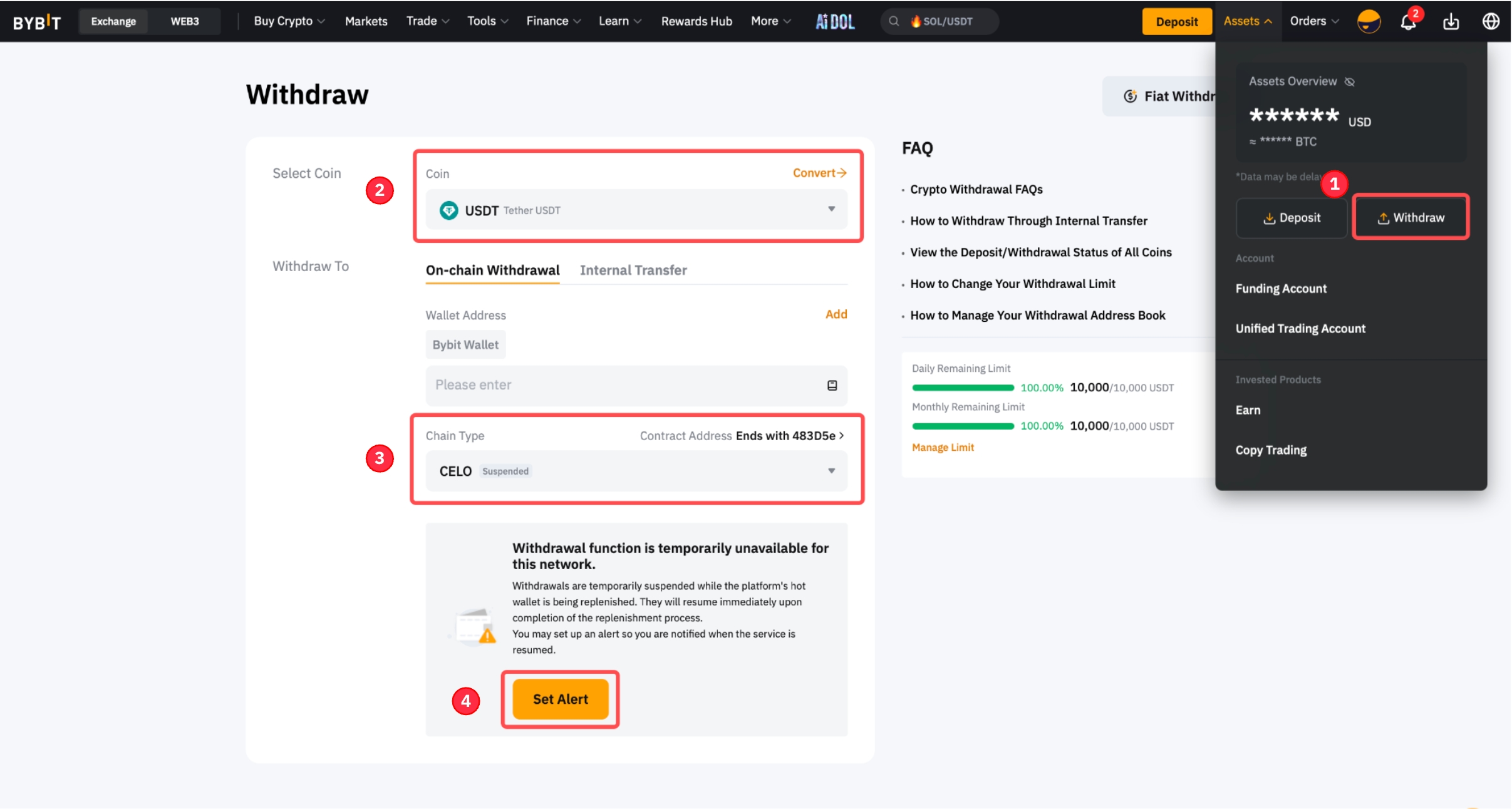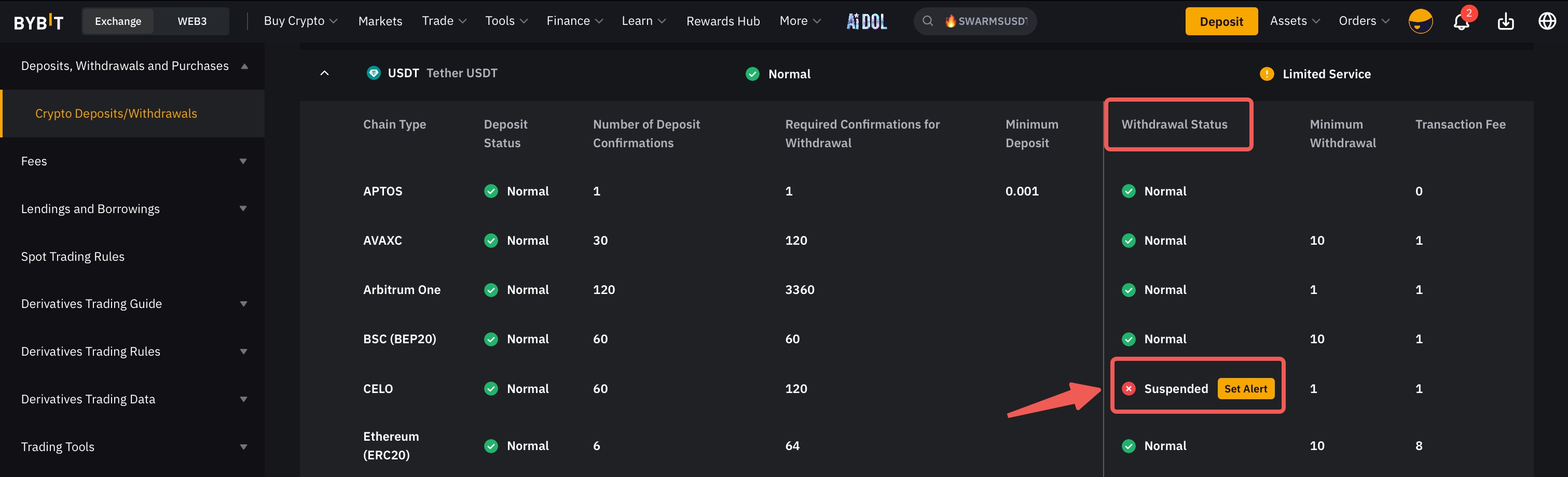 如何查看Bybit哪些币种可以提现,哪些币种提现被暂停?