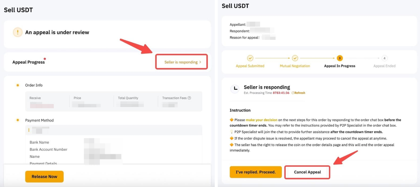 无论申诉问题或订单类型如何,包括申诉过程中提出的任何异议,申诉通道均遵循 P2P 用户服务条款P2P 申诉处理规则