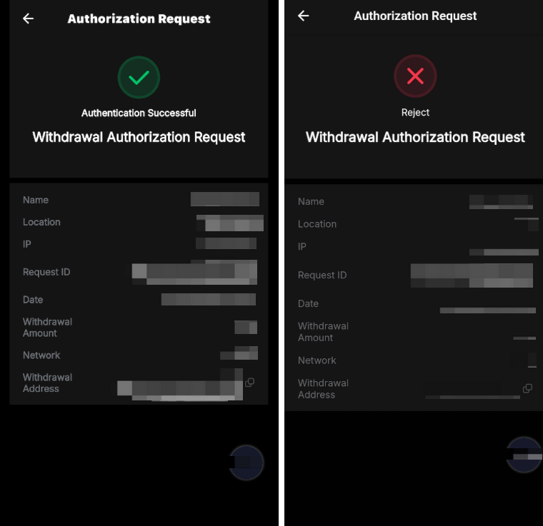 激活该功能后,需指定一部手机作为您的主设备,其余设备将自动列为备用设备。当通过备用设备或 Bybit 官网发起提币或其他交易时,系统将向您主设备上的 Bybit App 发送验证申请。您可以选择批准该交易,若交易看上去很可疑,您也可以选择拒绝该交易。