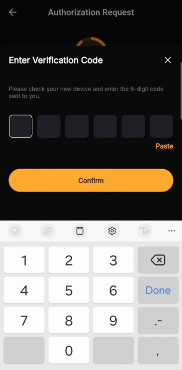 第 2 步:点击确认,即可在备用设备上的 Bybit App 里获得 6 位验证码。