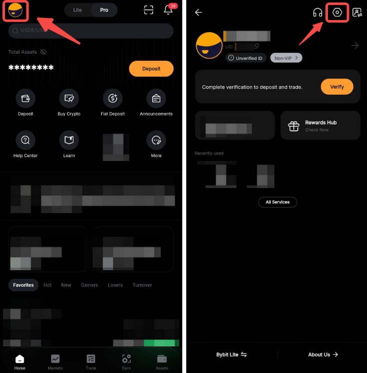 您可在 Bybit App 端完成上述步骤:点击个人资料图标 → 账户 → 身份认证和/或安全设置。