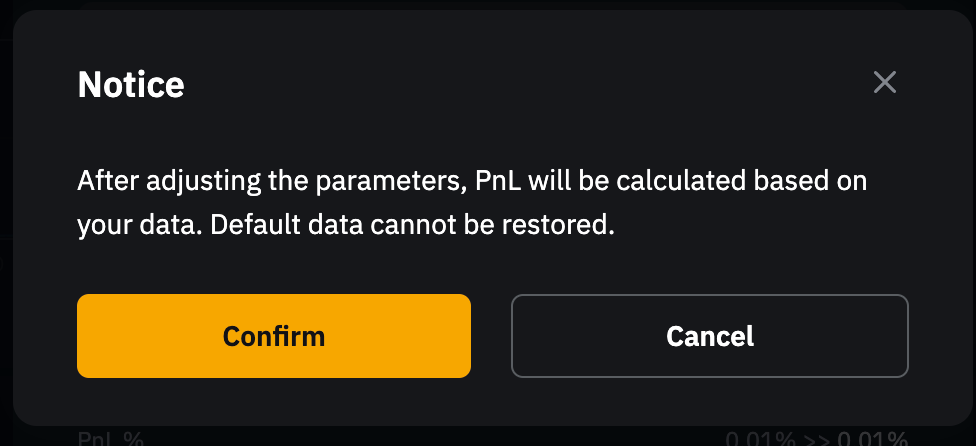 第 3 步:系统将弹出确认窗口,提示您将根据修改后的数据重新计算收益和收益率。您可在交易页面底部资产旁的盈亏项下查看更新后的收益与收益率。请注意,修改操作不可撤销。点击确认以继续。