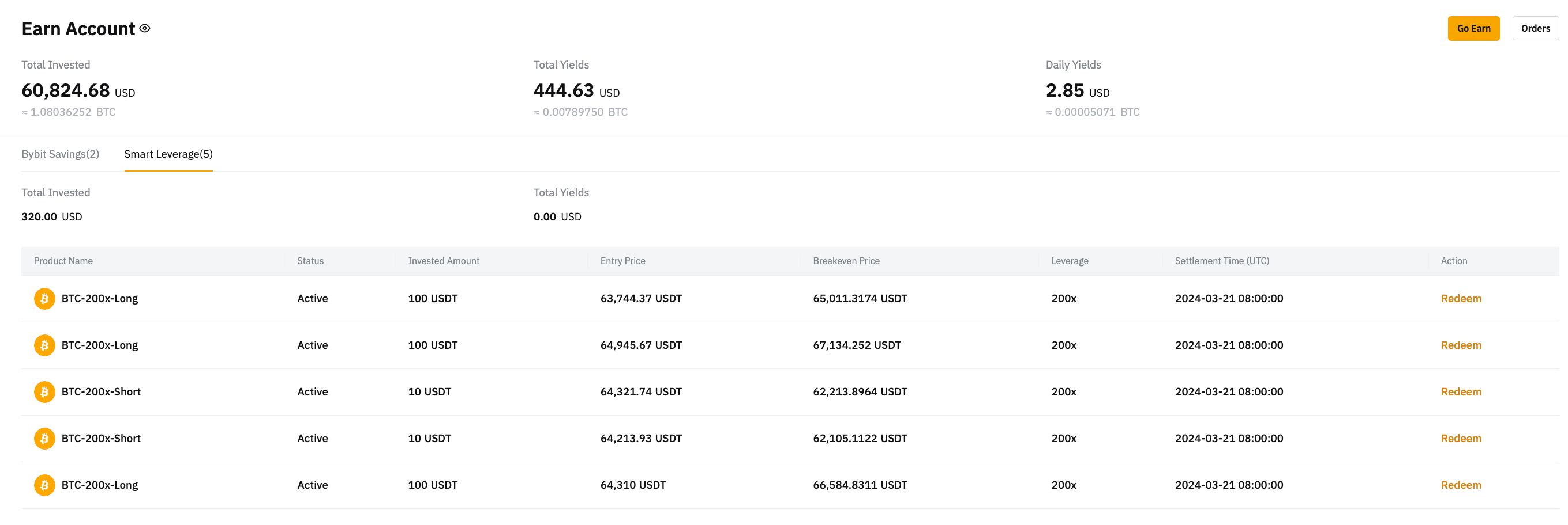 或者,您也可以点击 Bybit 页面右上角的资产,进入理财账户页面。您可以在这里查看当前订单。