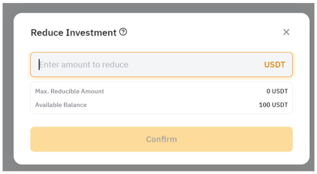 — 最大可减金额会显示在“减少投资额”窗口中。