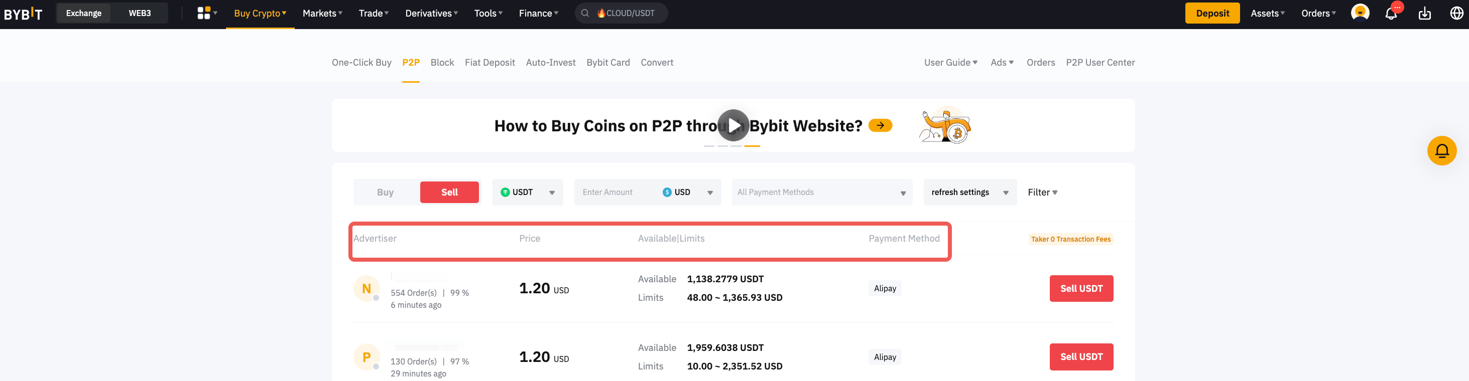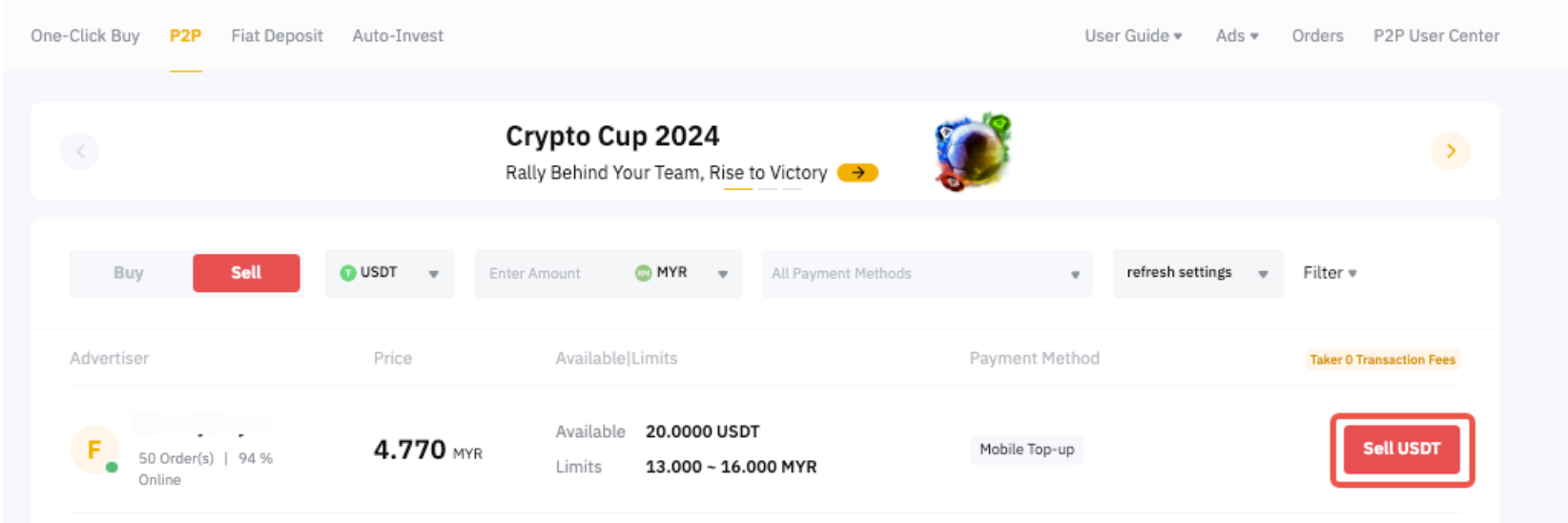 第 3 步:选择心仪广告,然后点击卖出 USDT
