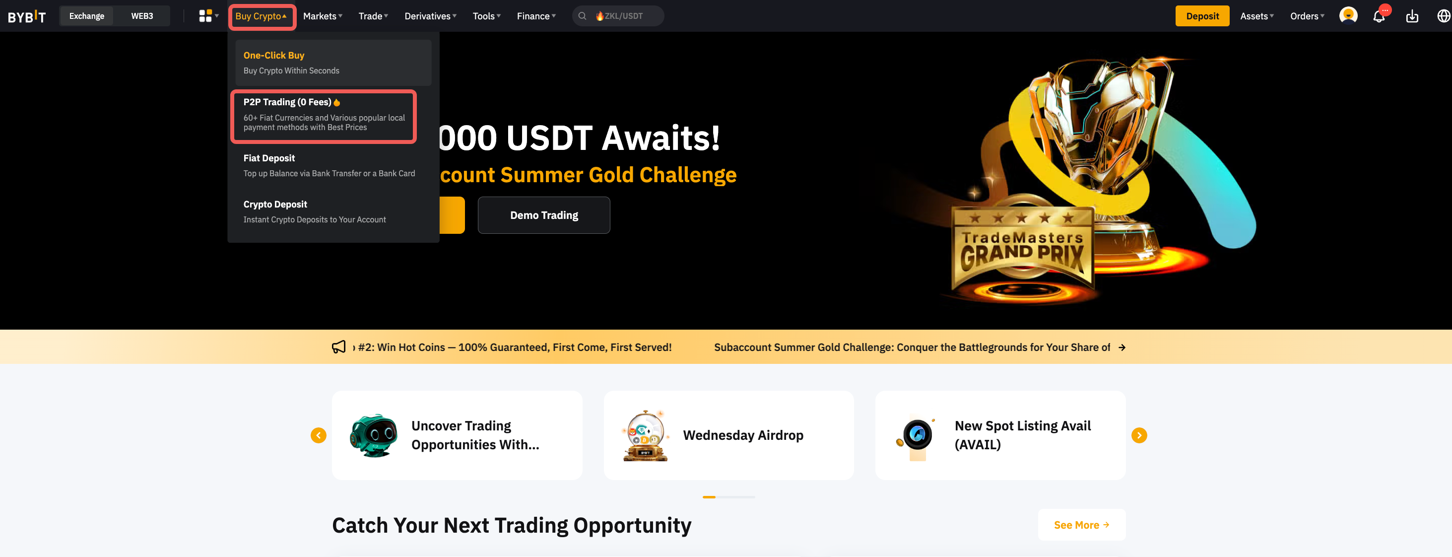 第 1 步:请点击导航栏左上角的买币P2P 交易,进入 P2P 交易页面。