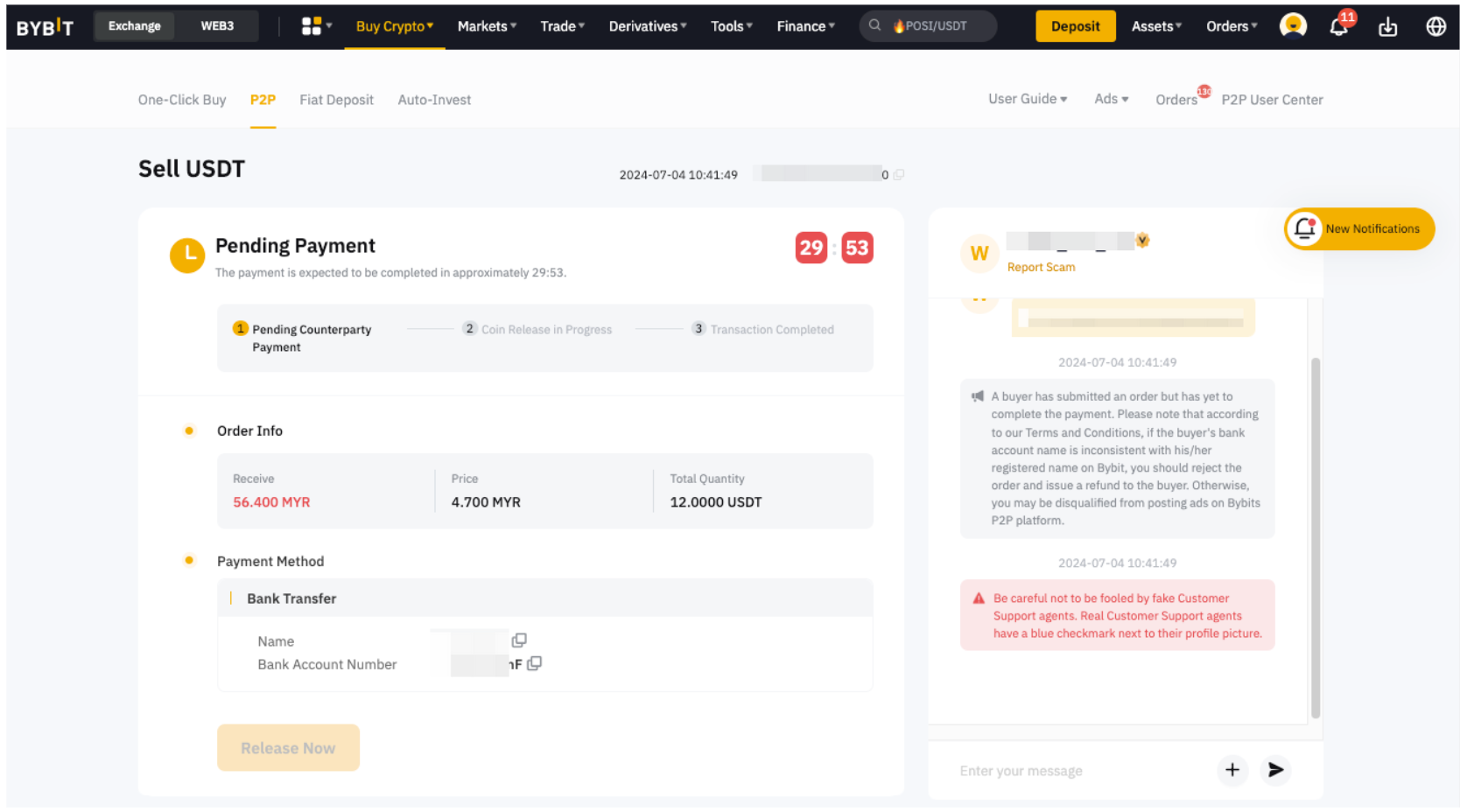 — 您的银行账户名称必须与您在 Bybit 注册的姓名一致。否则,您的账户可能会被暂停,买方有权拒绝与您一起购买代币。