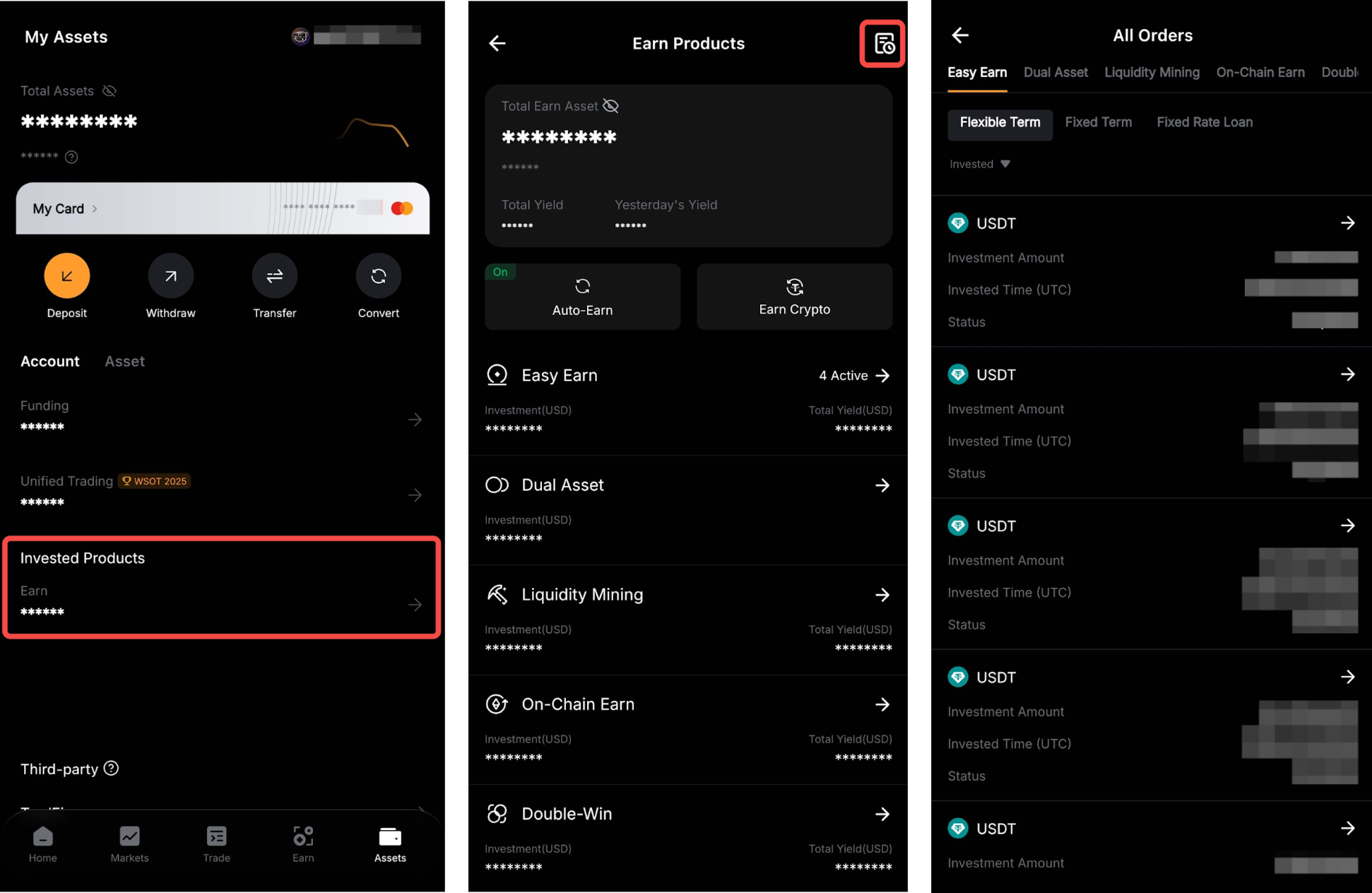 此外,您还可以前往资产 → 投资产品 → 订单(右上角)→ 轻松理财 → 灵活期限,找到您的订单记录。