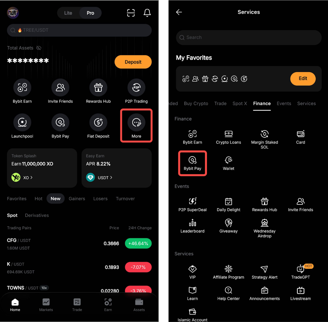 第 1 步: 单击“更多”→“金融”,然后选择“Bybit Pay”进入“Bybit Pay”页面。