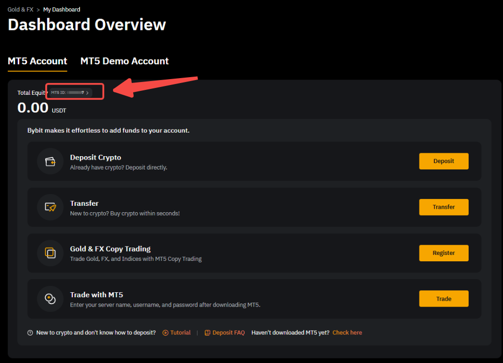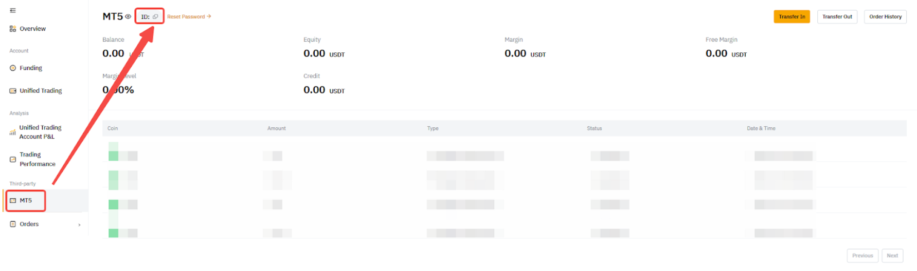 1. 您的 MT5 资产页面中的 MT5 登录 ID 部分将为空。