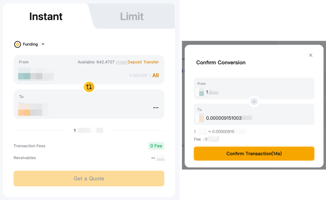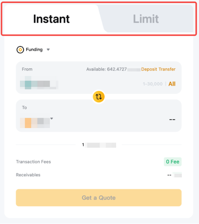 资金账户和统一交易账户均支持即时模式,而限价模式仅支持资金账户。请确保您的资金处于正确的账户中,然后再进行兑换。