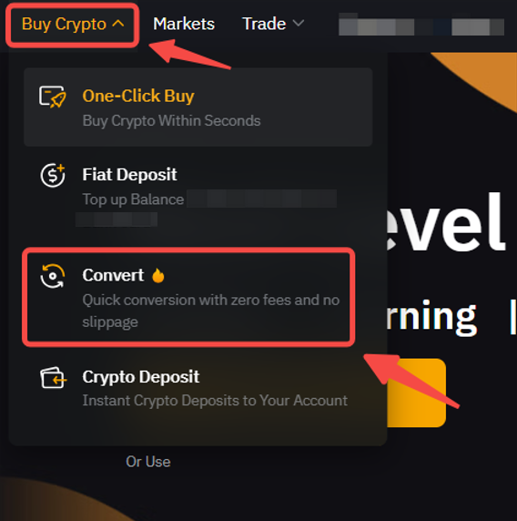 第 1 步:在顶部导航栏中选择快捷买币,然后点击闪兑。